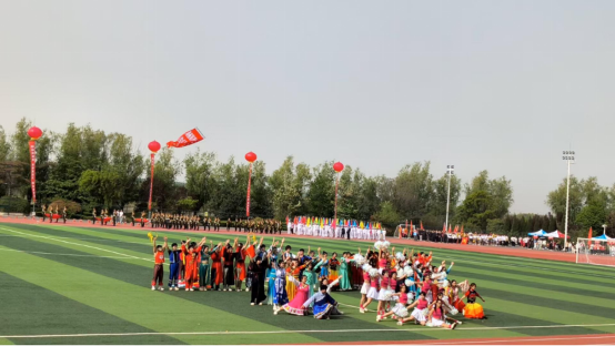阳光倾洒跑道,beat365唯一官方网站方阵入场,队员统一白衣,红旗招展,淡绿长裙的领队优雅举牌引领。至操场中央,身着多彩民族服饰的队员与啦啦操队员迅速汇聚,或高举手臂似拥未来,或席地而坐姿态俏皮。随后重组,整齐行进,斑斓服饰似流动画卷。这场表演尽显beat365官网学子的青春活力与团队风采,赢得全场观众的阵阵掌声与喝彩。