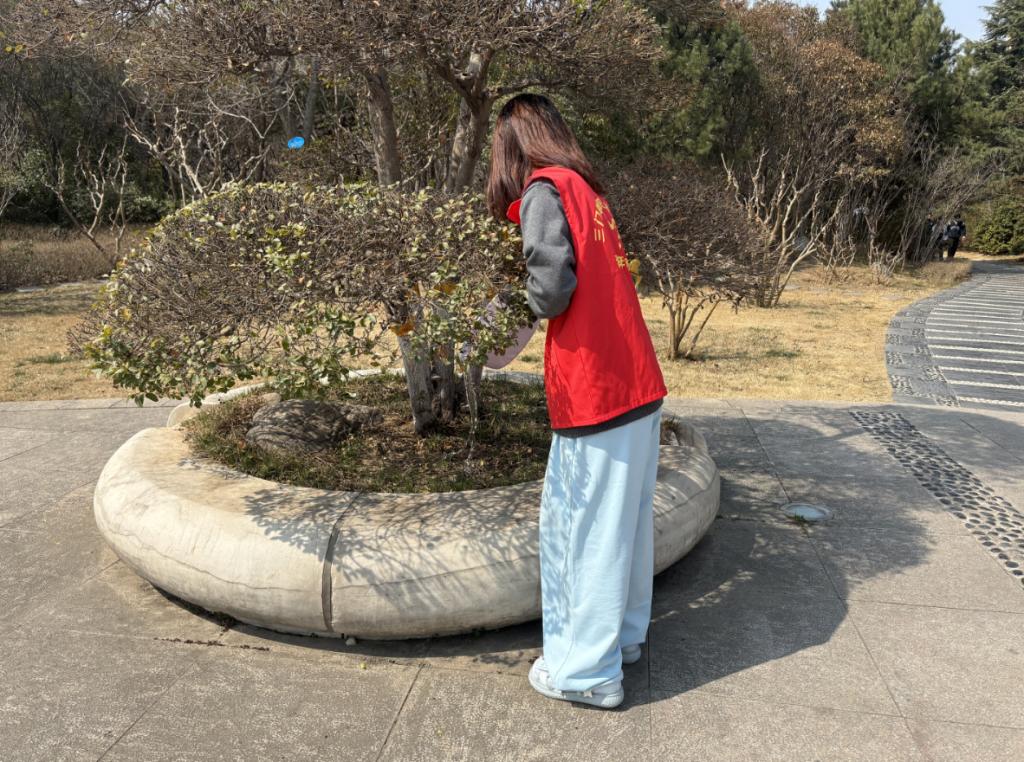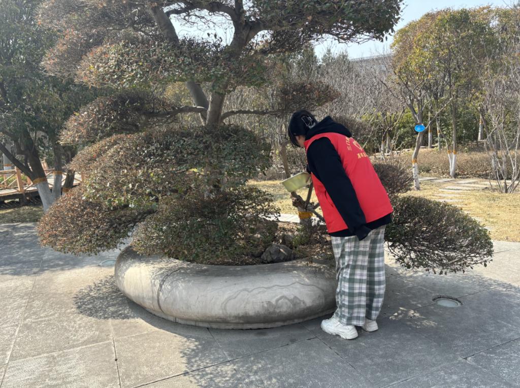 志愿者们秉持着植绿护绿、爱护环境的原则,对喷泉广场、文化广场进行垃圾清扫、并为这里的树木、盆景、绿化带浇水养护、他们合理分工,相互配合、干劲十足,志愿者们用实际行动践行雷锋精神,为美丽校园添姿加彩。