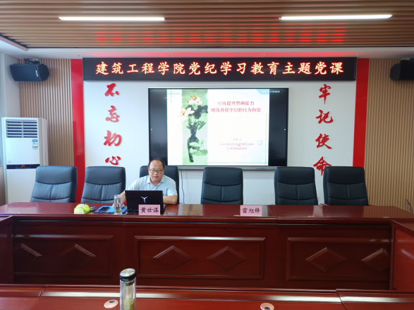 2024年7月1日,在中国共产党成立103周年之际,为推动党纪学习教育走深走实,beat365唯一官方网站邀请联系校领导、党委委员、副院长黄世谋作题为“修炼提升思辨能力,增强遵规守纪的行为自觉”的党纪学习教育专题党课,全体党员教师参加。会议由党总支负责人雷旭锋主持。
