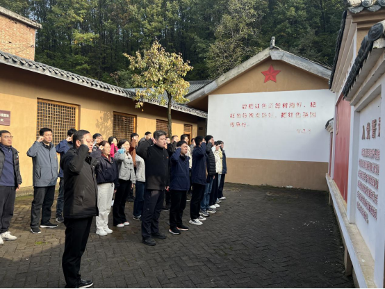 在纪念馆前的广场上,面对鲜艳的中国共产党党旗,全体党员整齐列队,举行了庄重的重温入党誓词仪式。在领誓人的带领下,大家举起右拳,以铿锵有力的声音再次许下对党的忠诚誓言:“我志愿加入中国共产党……随时准备为党和人民牺牲一切,永不叛党。”激昂的誓言在广场上空回荡,表达了同志们坚守初心、担当使命的坚定决心,进一步强化了党员的身份认同感、责任感和荣誉感。
