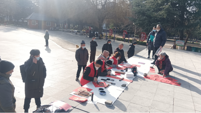 春节临近,为弘扬中华传统文化,营造积极向上、欢乐祥和的春节氛围,1月19日下午开发区黄河广场公园beat365唯一官方网站教师党员开展“送福 送春联”公益活动,现场为群众送出春联三十余幅,福字五十多个。