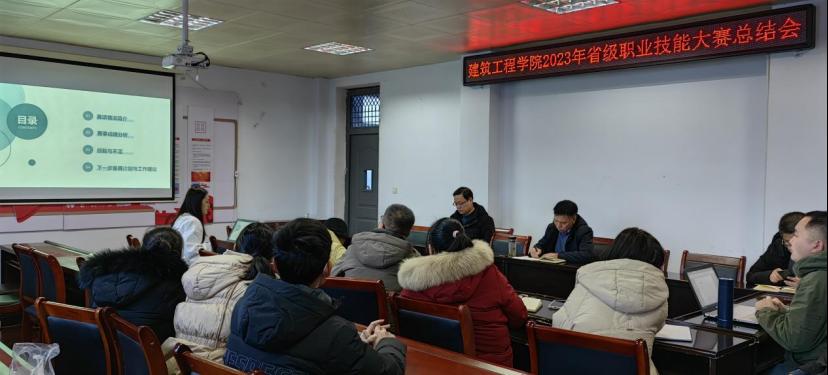 参加2023年学院在河南省职业技能大赛的建筑装饰数字化施工、地理空间信息采集与处理、建筑智能化系统安装与调试、装配式建筑智能建造、环境艺术设计、建设工程数字化计量与计价共6个赛项团队分别对参赛项目在备赛、参赛过程中的优势与不足进行了逐一分析,并对后续备赛改进情况进行了汇报。