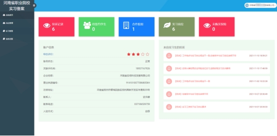 依托职业院校校企合作的已有基础,河南省职业院校实习备案模块采取线上备案职业院校实习方案、在线查询实习企业,学生线上选择实习单位的方式组织开展实习活动,实现学生实习线上组织、一般问题线上提出线上反馈、线上实习考核、学生与企业实习互评的全过程权益保障,构建充分尊重学生选择权、各实习参与主体权责明确、阳光透明的实习信息化管理模式。