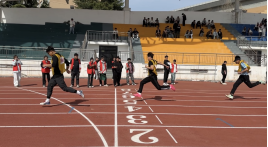 赛场上,气氛热烈激昂,各种项目丰富有趣。运动员们目光坚定,随着发令枪清脆的声响,运动员们如离弦之箭般冲出起跑线,挥洒的汗水在阳光的映照下闪烁着光芒。每个运动健儿都努力发挥出自己最好的水平,敢于奋力拼搏,不断突破自我。