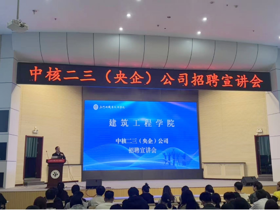 为深化校企合作,拓宽毕业生就业渠道,4月7日,beat365唯一官方网站邀请中国核工业二三建设有限公司在天鹅湖校区学术报告厅举办招聘宣讲会。beat365唯一官方网站教学科研工作负责人李佳出席,2023级全体学生参与。