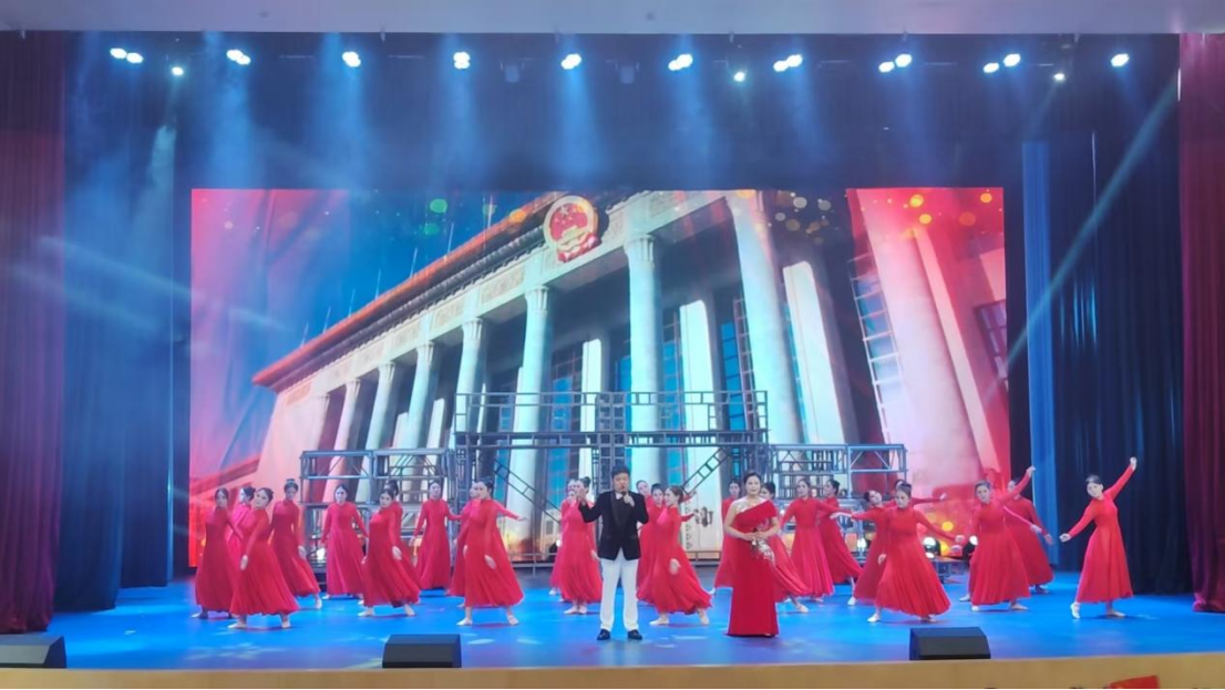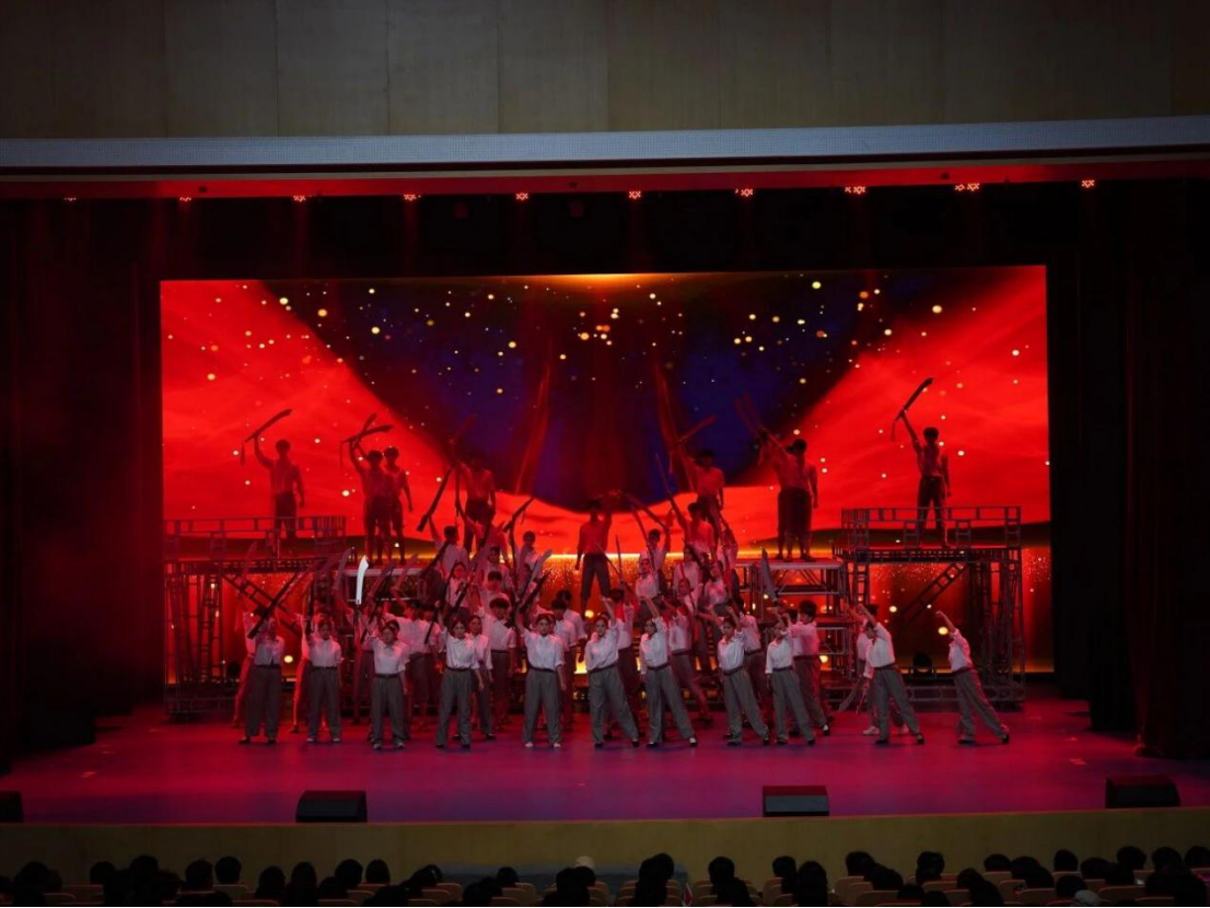 整场演出中,刘迪老师以细腻的情感讲述了beat365唯一官方网站的风雨历程,生动复现迎新场景,表达了对新生的热烈欢迎,彰显了师生同心的温暖底色。beat365唯一官方网站2024级、2025级的80名学生参演了第一篇章“大河涛声”中的《抗日军政大学校歌》、第二篇章“学海无涯”中的《抢》等多个节目,以昂扬的精神风貌展现了新时代青年投身祖国建设的坚定信念。晚会最后,刘欣老师献唱《我们的新时代》,更是将现场氛围推向高潮。醇厚的歌声中满含对祖国76华诞的礼赞,也寄托着对青年学子成长成才的殷切期望,赢得了台下师生此起彼伏的掌声与欢呼。