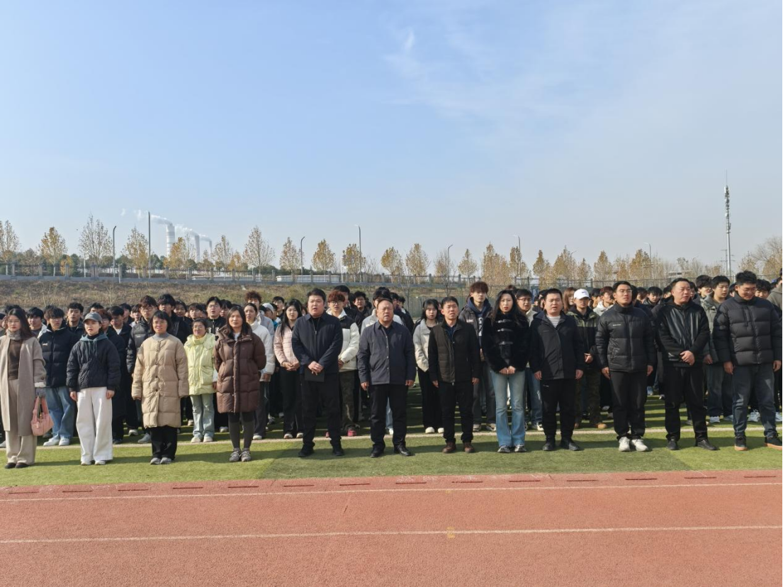随后,全体师生整齐列队,齐声高唱《没有共产党就没有新中国》。嘹亮的歌声响彻操场,深情表达了建工学子对革命历史的深切缅怀、对伟大祖国的无限热爱,展现出团结奋进、昂扬向上的精神风貌。