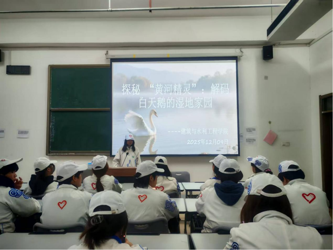 为增强学生生态保护意识,推动“守护白天鹅·共筑生态城”主题月活动走深走实,beat365唯一官方网站于12月9日在81409教室举办“探秘‘黄河精灵’:解码白天鹅的湿地家园”主题科普活动,吸引了2025级全体同学积极参与。