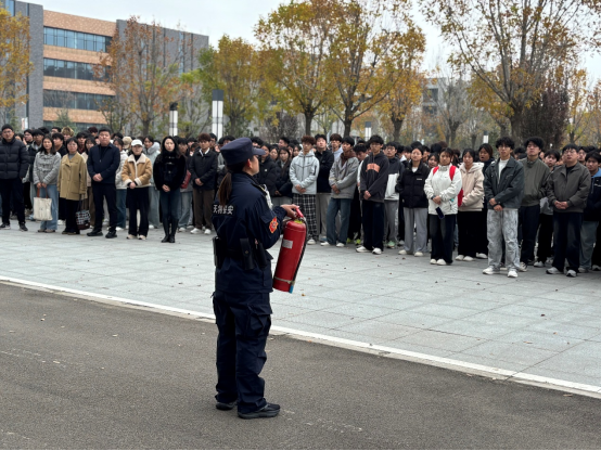 活动现场,学校保卫处专业人员为同学们带来了一场生动而实用的消防安全知识讲解。保卫处工作人员结合校园和生活中的常见火灾隐患,详细介绍了火灾预防、初期火灾扑救、火场逃生疏散等方面的基本常识和要点。随后,工作人员现场演示了干粉灭火器的正确使用方法,包括使用前的检查步骤、摇匀、拔销、握管、瞄准、压喷等关键操作环节,并进行了标准示范。