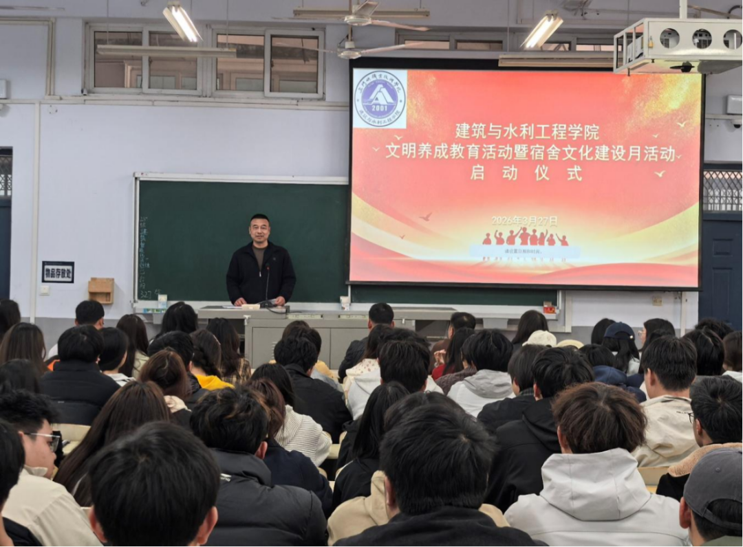 张涛涛在致辞中代表学校学生处对本次活动的顺利启动表示热烈祝贺。他指出,宿舍是学生成长成才的重要空间,也是学校落实立德树人根本任务的关键阵地。他对学院围绕“以宿舍为家,以文明为风,以奋进为魂,以筑梦为志”主题精心策划的 “五个一” 系列活动给予充分肯定,并希望学院切实抓好活动统筹,引导全体师生主动担当、积极参与,共同把宿舍建设成整洁舒适的生活家园、勤学善思的学习乐园、团结温暖的成长港湾。