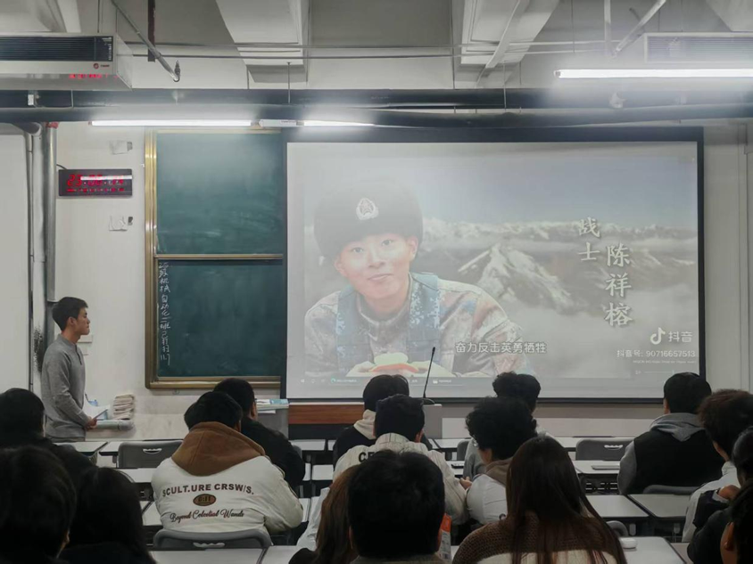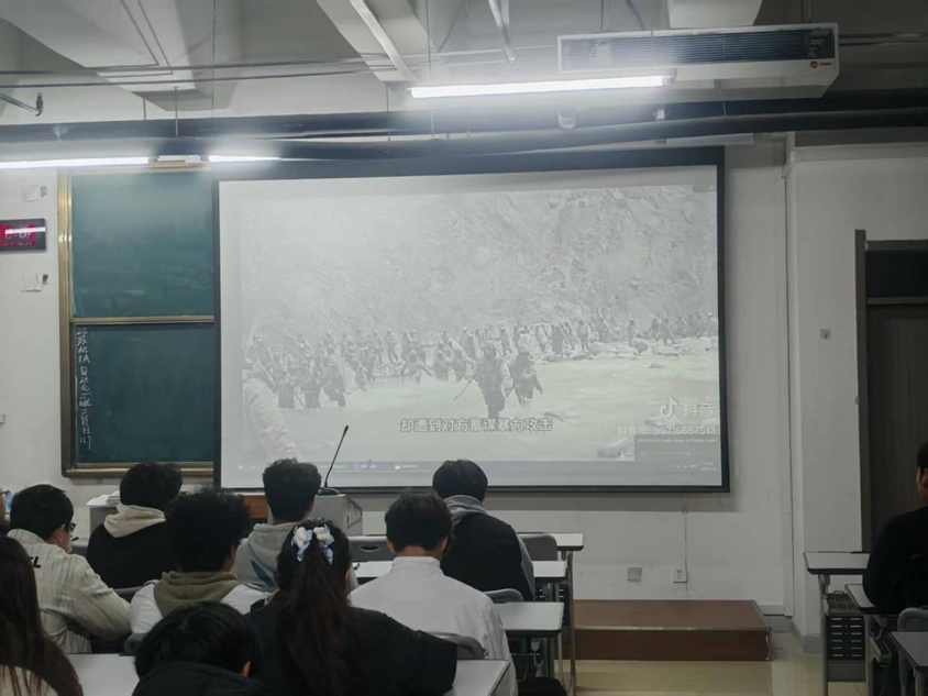 分享会还设置了主题观影环节,张鹏飞为大家播放了红色军事题材影片片段及退伍军人励志纪录片。引导同学们借助直观生动的影像画面,深刻感受爱国主义精神与军人优良作风,在沉浸式体验中深切体悟责任与担当。