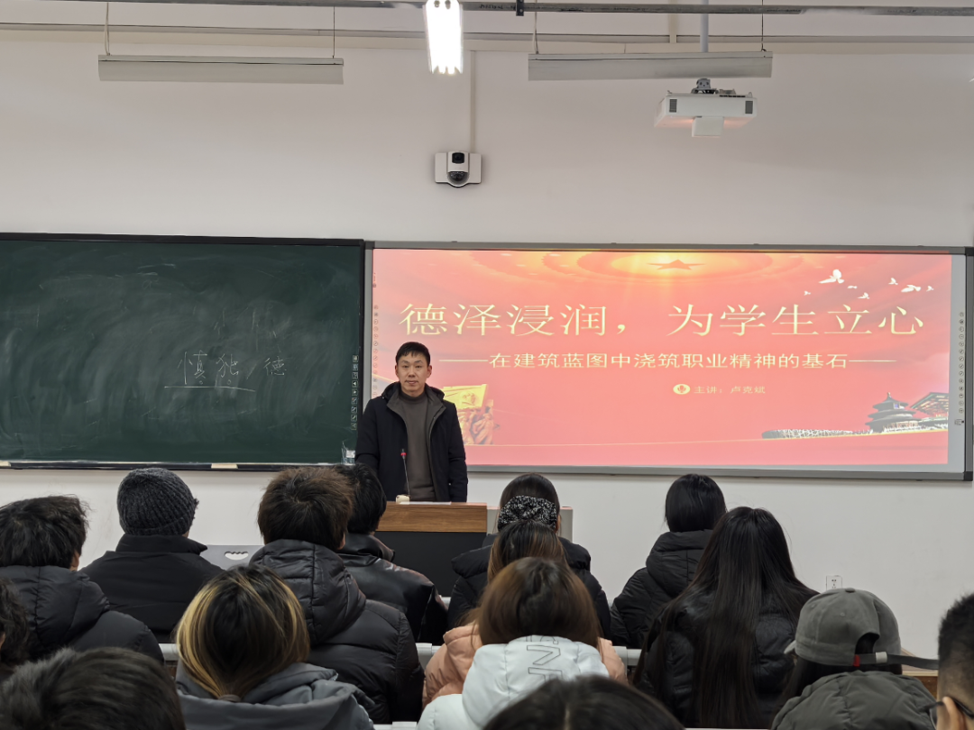 12月31日,beat365唯一官方网站依托“菁砼学堂”平台,开展“德泽浸润·为学生立心”主题活动。学院学生工作负责人卢克斌以“一师一课”为载体,围绕职业精神与工匠人格,为学生讲授专题课。