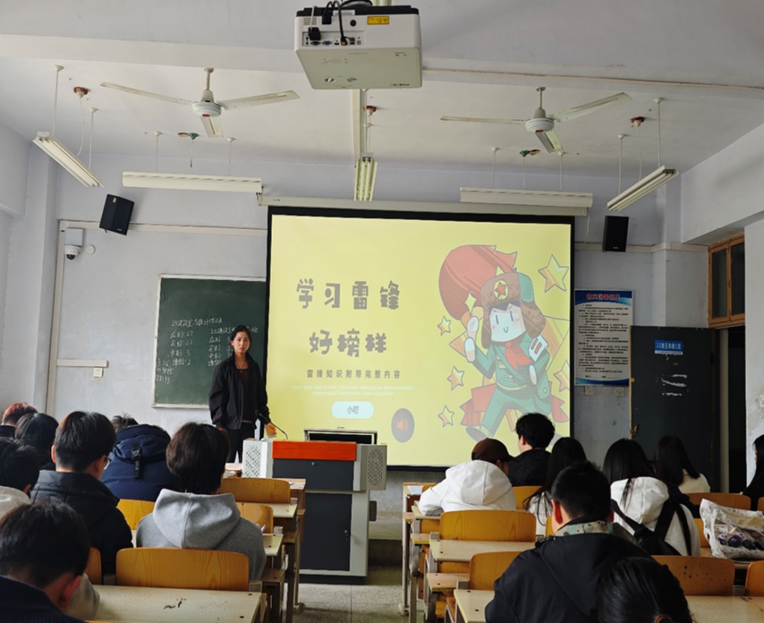在共青团团歌声中,各支部主题团日活动拉开帷幕。活动伊始,各团支部书记带领团员青年共同重温雷锋同志的先进事迹,通过讲述雷锋故事、诵读雷锋日记、观看精神主题短片等形式,让同学们深入了解雷锋同志平凡而伟大的一生,深刻领悟“奉献、友爱、互助、进步”的志愿精神与雷锋精神的核心要义。