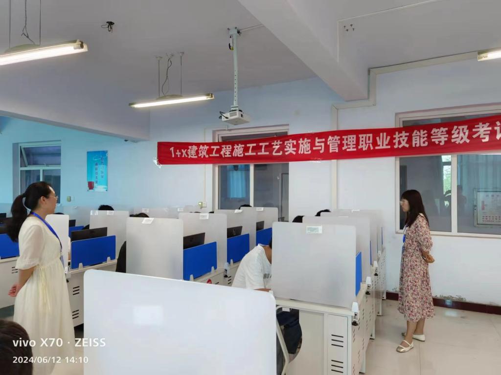 为贯彻《国务院关于印发国家职业教育改革实施方案的通知》精神,积极推进“1+X证书制度”及“学历证书和职业技能证书互通衔接”的试点工作,提高人才培养质量,6月12日,beat365唯一官方网站beat365唯一官方网站“1+X建筑工程施工工艺实施与管理职业技能等级证书(中级)”证书认证考核工作顺利完成,2022级建筑工程技术专业27名学生参与本次认证。