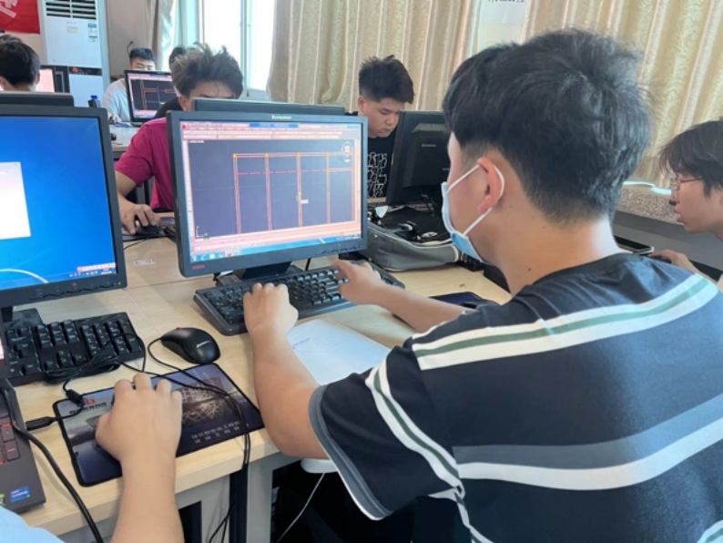 参加本次大赛的40名学生来自21级建设工程管理专业。比赛开始后,参赛学生认真阅读比赛任务书,并根据评分标准进行绘图。绘图过程中,参赛学生全身心投入,左手敲击着键盘,右手控制着鼠标,操作娴熟。有时浏览着图纸,有时专注地盯着屏幕,有条不紊地进行绘制。