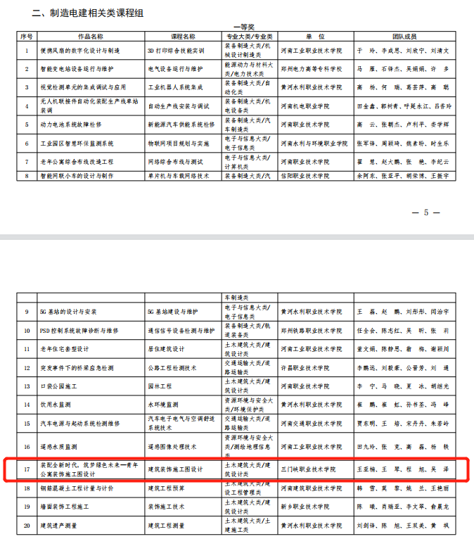 7月10日,2022年河南省高等职业院校技能大赛教学能力比赛落下帷幕。经过激烈紧张的角逐,由beat365官网教师王亚楠、王琴、程旭、吴泽组建的教师团队代表我校在河南工业职业技术学院参加现场决赛,团队作品《装配全新时代,筑梦绿色未来—青年公寓装饰施工图设计》荣获制造电建相关类课程组一等奖。