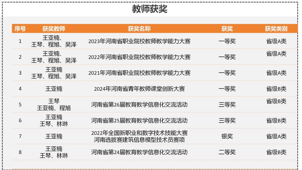 教学团队曾多次各级、各类赛事中,取得优异成绩。