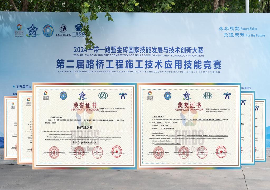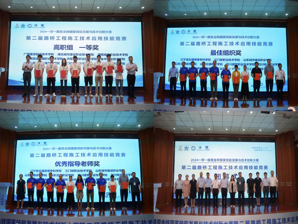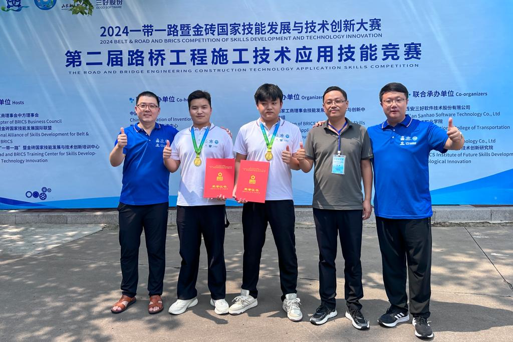 2024年8月20-22日,2024一带一路暨金砖国家技能发展与技术创新大赛第二届路桥工程施工技术应用赛项(BRICS-ST-028)全国总决赛,在山东交通职业学院隆重举行。本次路桥赛项决赛经过前期覆盖全国院校的校园赛,到665所院校参与的区域选拔赛,最终决出了来自全国的200余所院校参与角逐,共有包括国际选手在内的282支队伍的千余人参加此次决赛。 比赛分为中职组、高职组、本科组、国际组,来自全国28个省(区)、282所院校的282支队伍参加了本次决赛。经过激烈角逐,大赛于8月22日成功落下帷幕。该项赛事为两人一组的团队赛,我校参赛队,在师生共同努力下,一路披荆斩棘斩,最终获得高职组一等奖(金牌),同时我校获得大赛“最佳组织奖”。