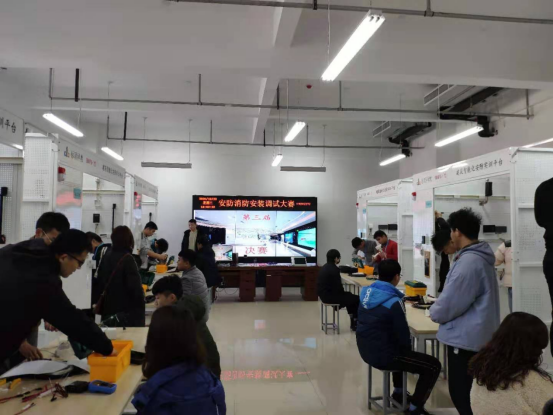 19级建筑智能化工程技术专业和建设工程管理专业学生以小组为单位,自由组队报名参赛。经过初赛、复赛的选拔,共36名学生进入最后决赛。比赛开始后,参赛学生认真阅读比赛任务书,并根据评分标准进行操作。经过2个多小时的激烈比赛,学生完成比赛内容。本次比赛使学生深入掌握安防系统工程和消防系统工程的施工方法、设备性能、调试技巧,在实践中提高学生安防工程和消防工程设计、实施的能力,提高学生学习积极性。