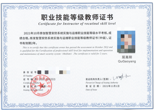 10月25日至30日,建筑智能化工程技术专业教师屈高阳、尚虎锋参加浙江宇视科技有限公司开展的1+X智慧安防系统实施与运维职业技能等级证书2021年全国师资培训班,考核合格,获得职业技能等级教师证书。