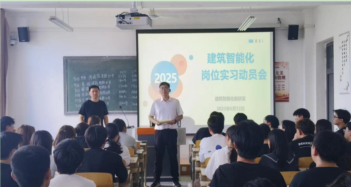 为助力建筑智能化工程技术专业学生顺利开启岗位实习生涯,建筑智能化教研室于2025年6月在5号教学楼隆重召开岗位实习动员会。学校领导、专业教师及全体即将参与实习的学生共同参会,为同学们迈向职场第一步筑牢根基。