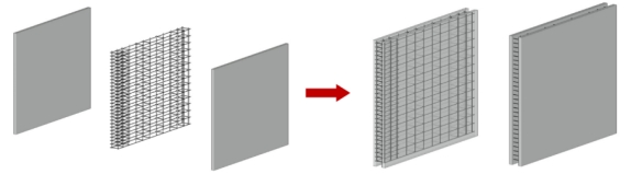 混凝土壳 + 成型钢筋骨架 + 混凝土壳 = 叠合剪力墙构件