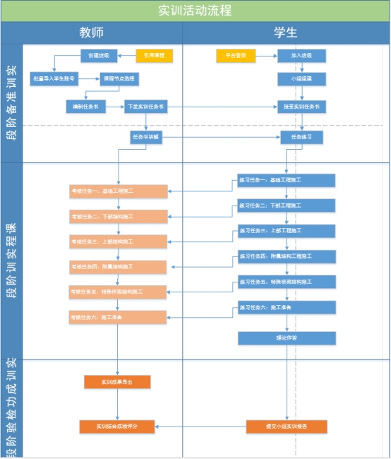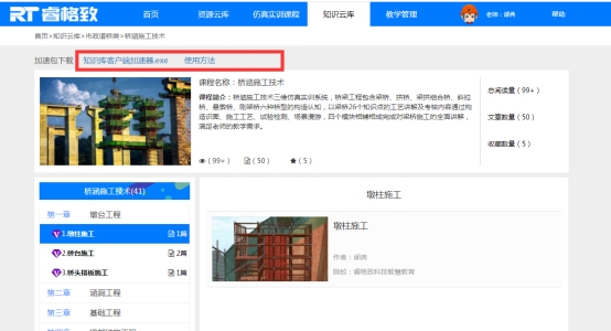 桥涵施工技术虚拟仿真课程包含基础工程、下部工程、上部工程、附属工程的实训内容,真实体验施工工艺全过程,实训流程环环相扣,实训过程由浅入深,实现真实施工现场不具备和难以完成的教学功能。